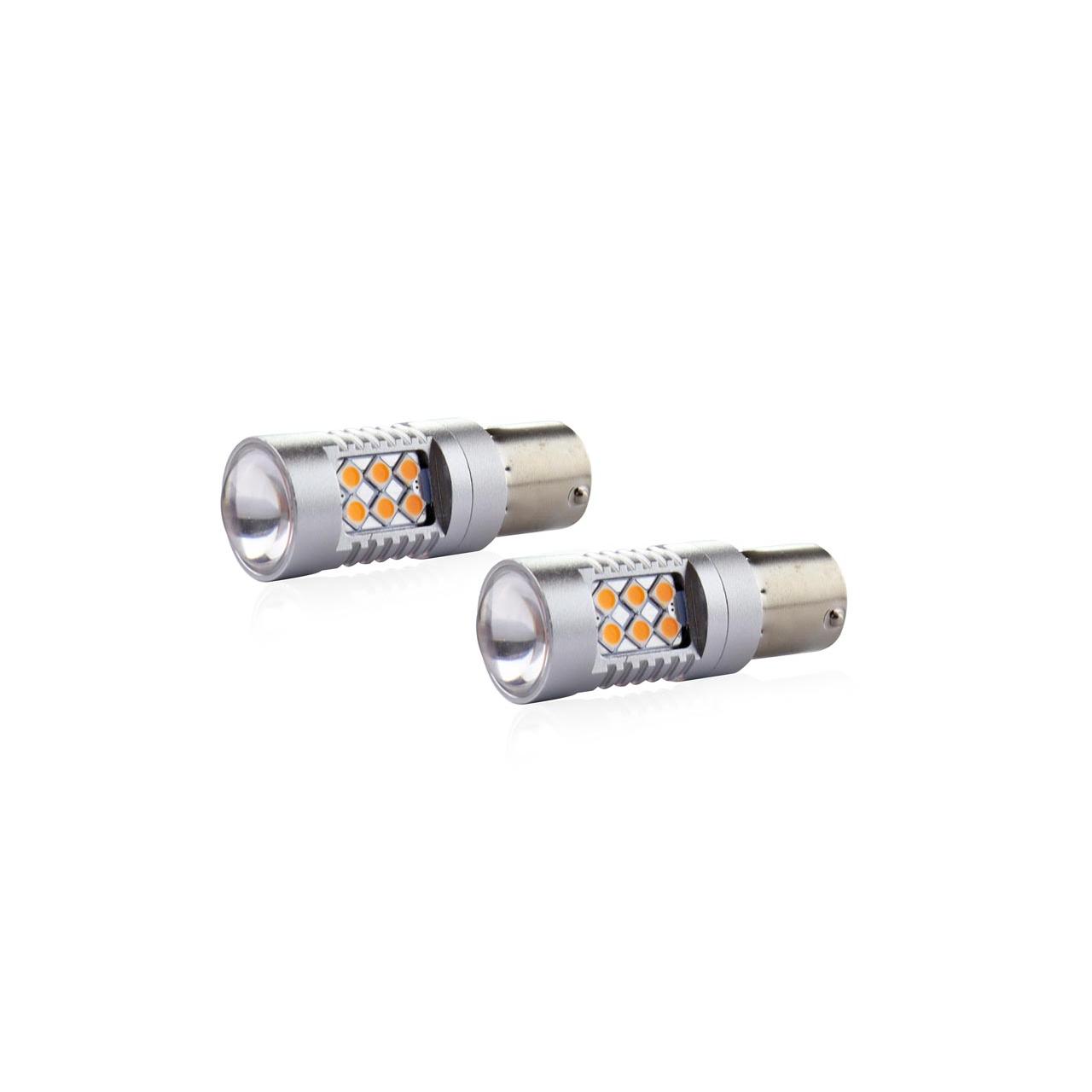 Set becuri auto cu led canbus compatibil p21w ba15s 24 smd 6.2w orange 12/24v, destinat competitiilor auto sau off-road