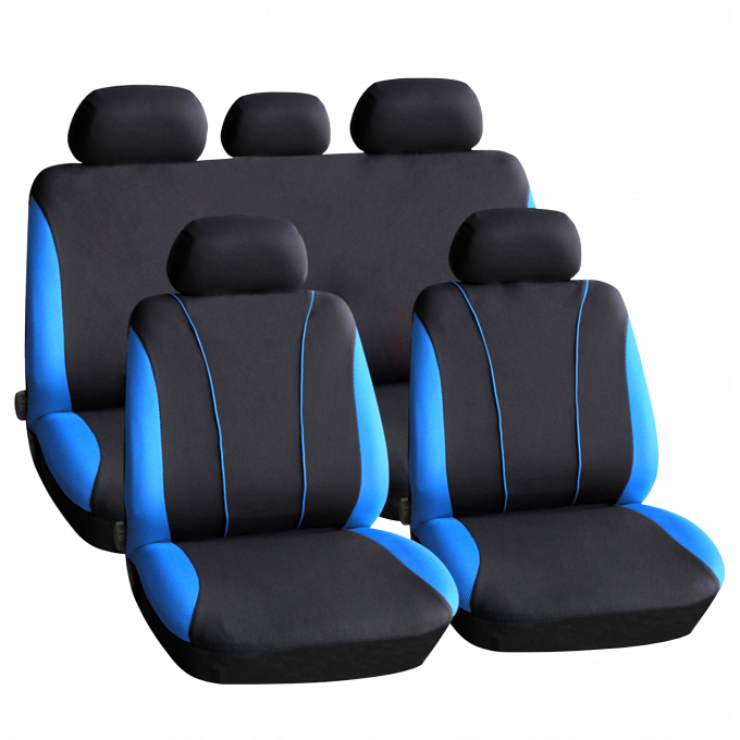 Set huse scaun auto ieftine, universale 9 piese, model v-style - albastru