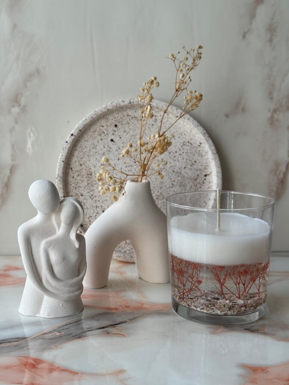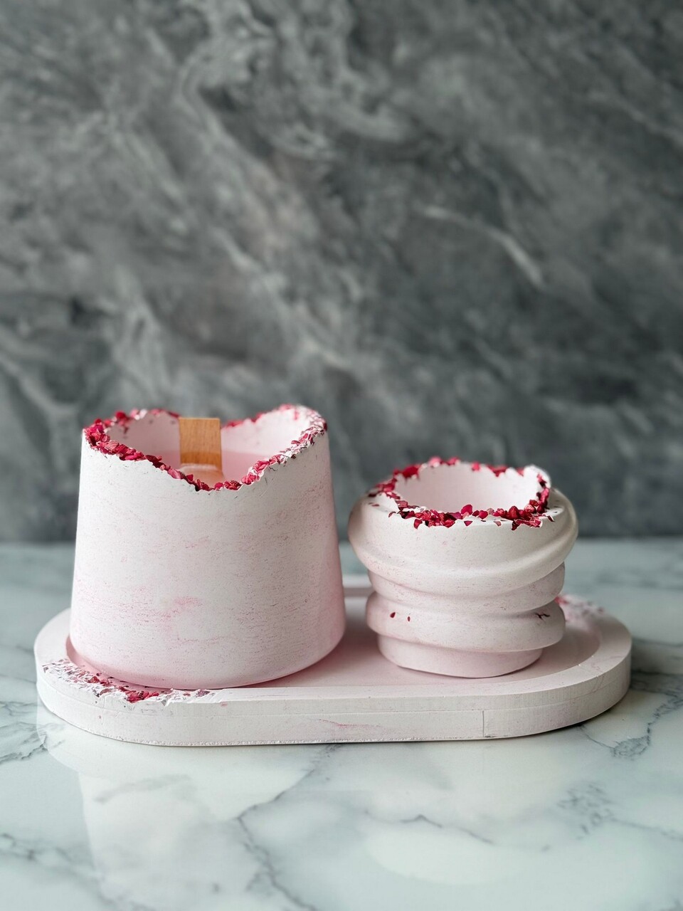 Set de lumanari, Glamour Candle 39ST, Beton, Roz/Alb