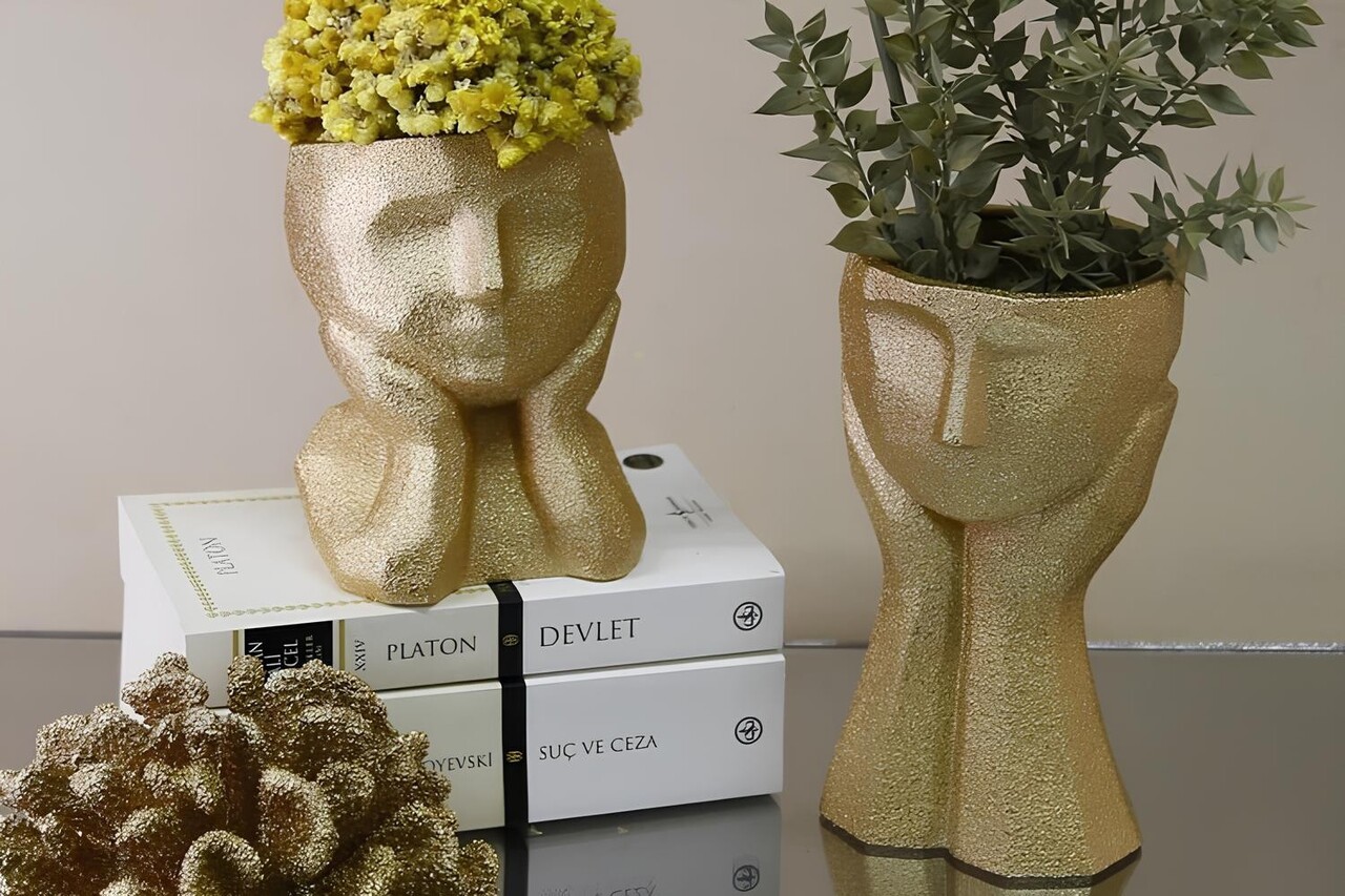 Set de ghivece decorative, CY0451, Poliester, Auriu