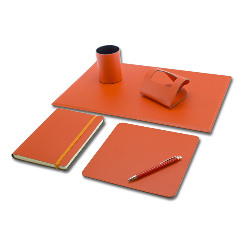 Set birou piele regenerata, 5 piese, portocaliu, Base