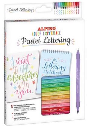 Set pentru caligrafie, 12culori pastel/set +caiet , 2 varfuri, ALPINO Color Experience MS-AR001093