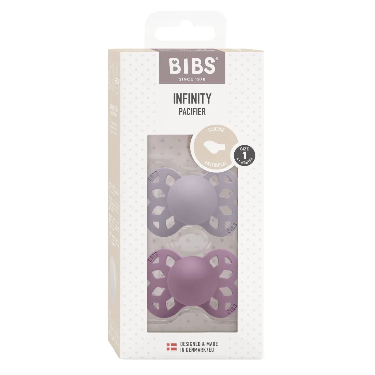 Set suzete Infinity Fossil Grey - Mauve 0luni+, 165111, 2 bucati, Bibs
