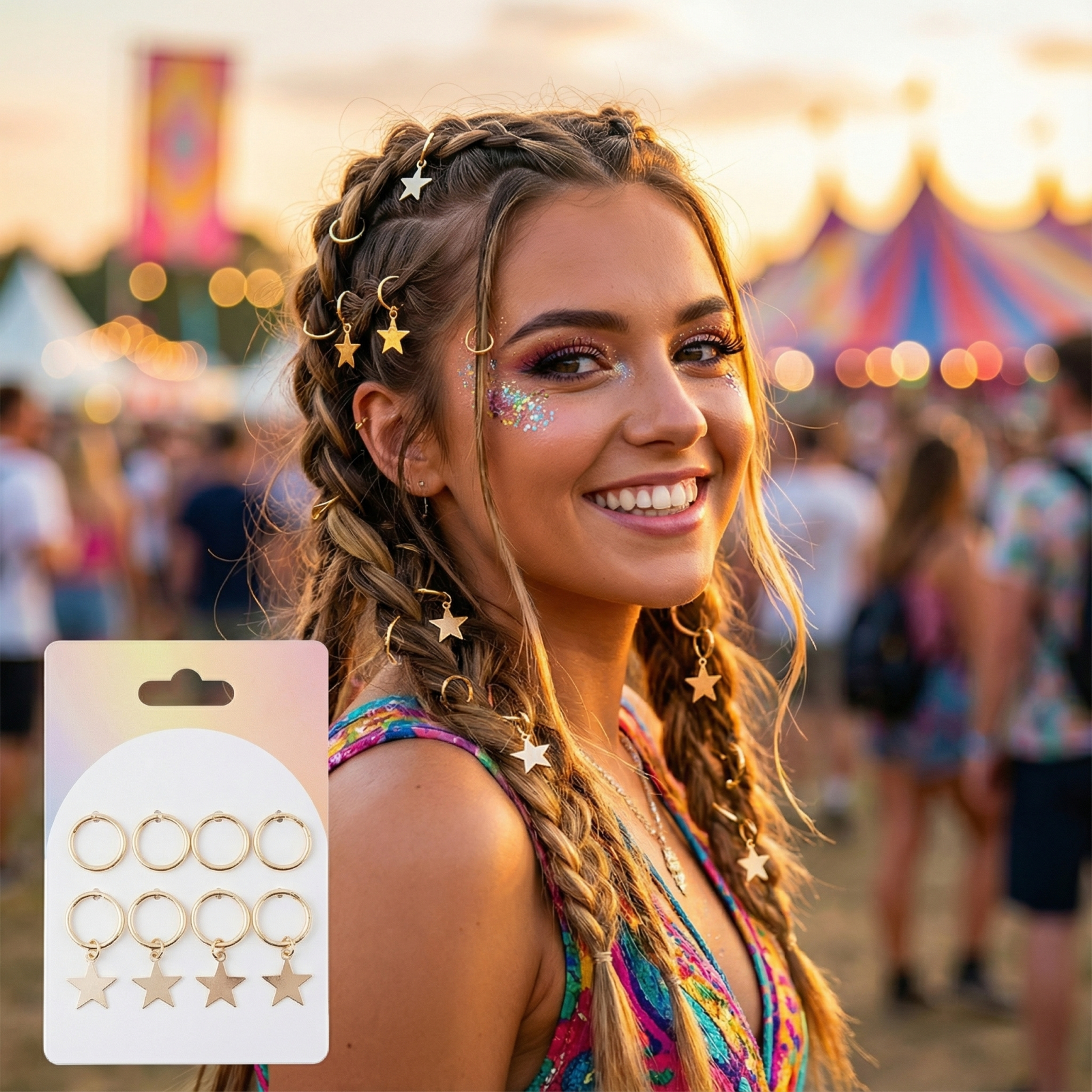 Set 10 inele decorative pentru par - AURII CU STELUTE Aurii cu stelute