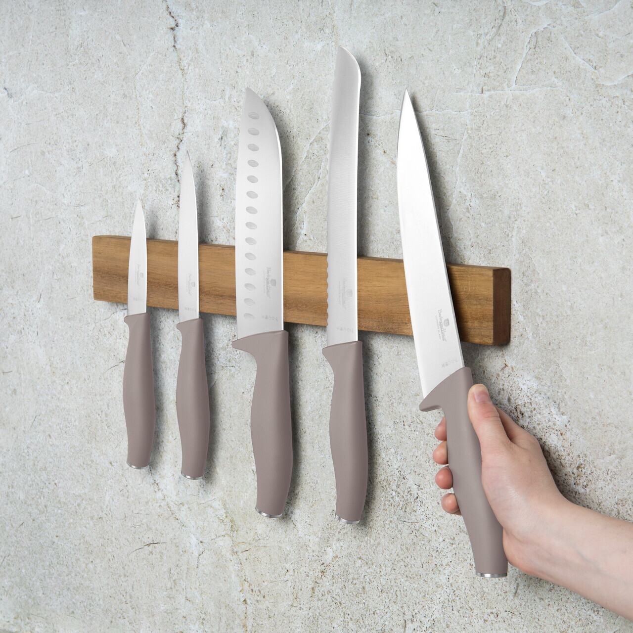 Set 5 cutite cu suport magnetic Berlinger Haus, Taupe, inox/lemn, taupe mat/natur
