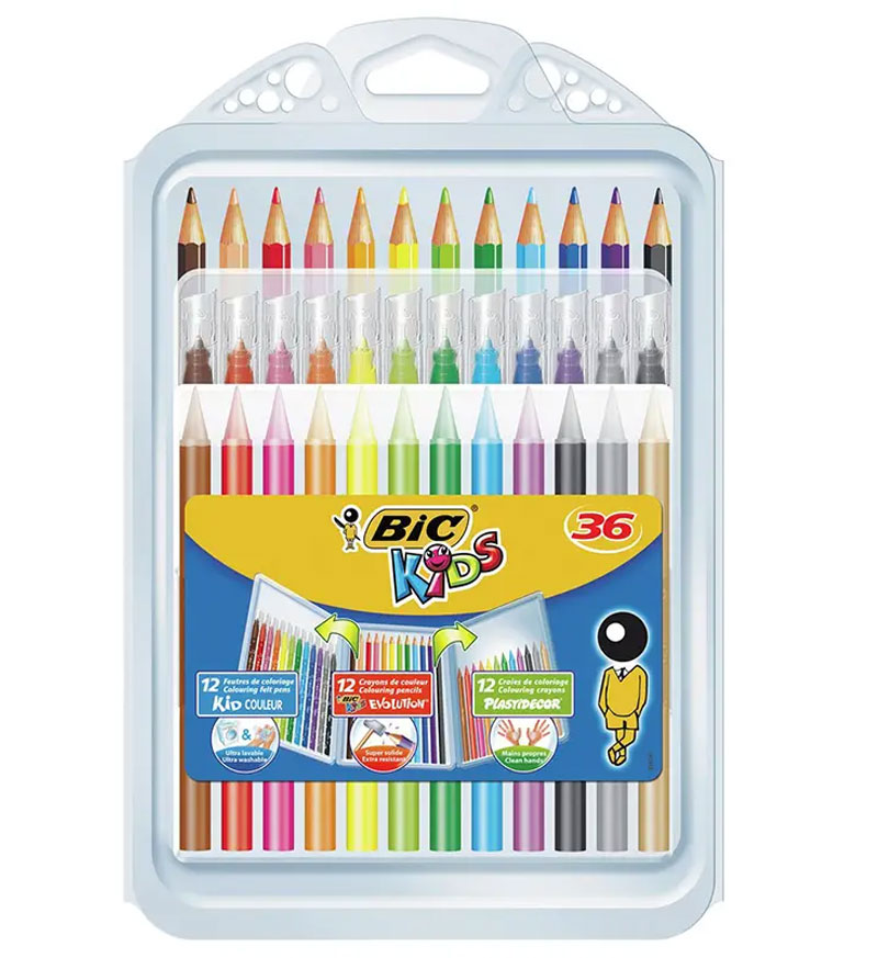 Set 12 creioane colorate + 12 markere de colorat, Bic