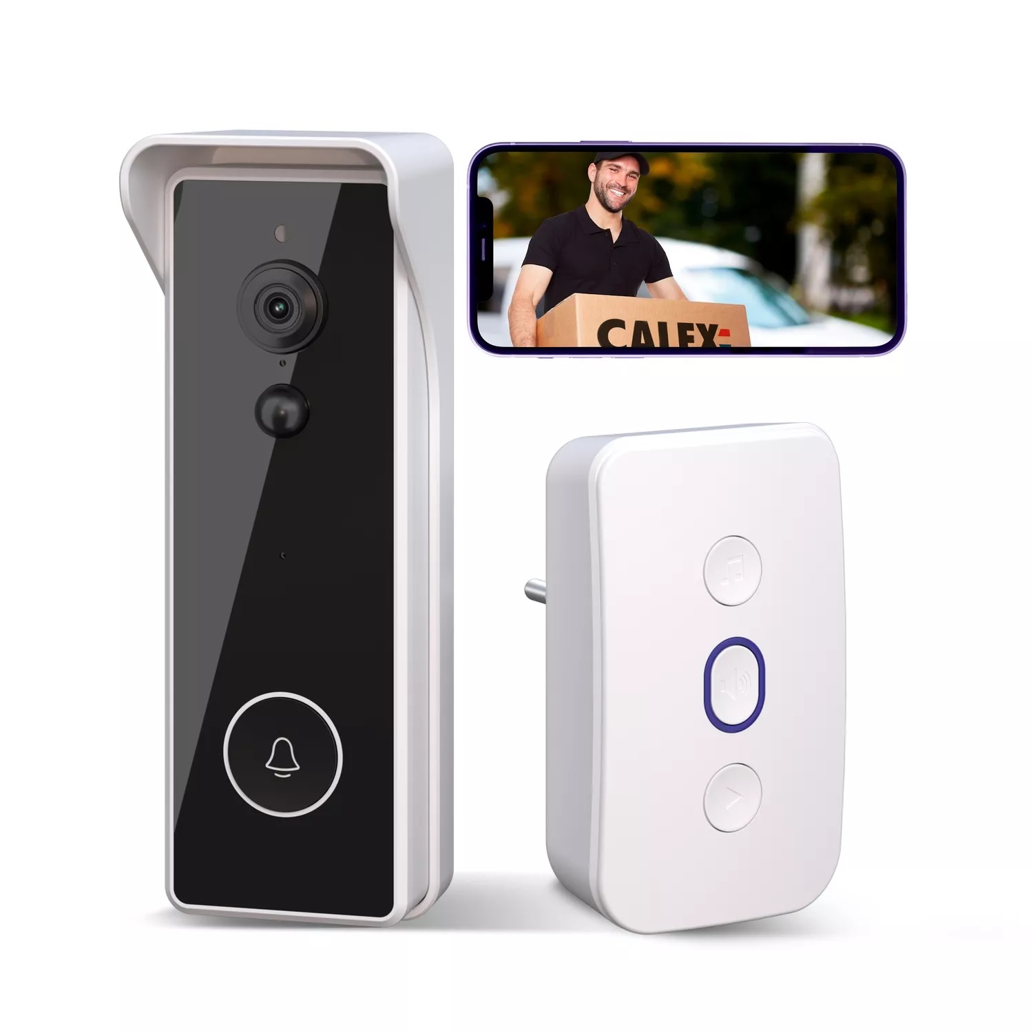 Set Sonerie video Calex Smart 2K cu difuzor wireless, WiFi, Negru