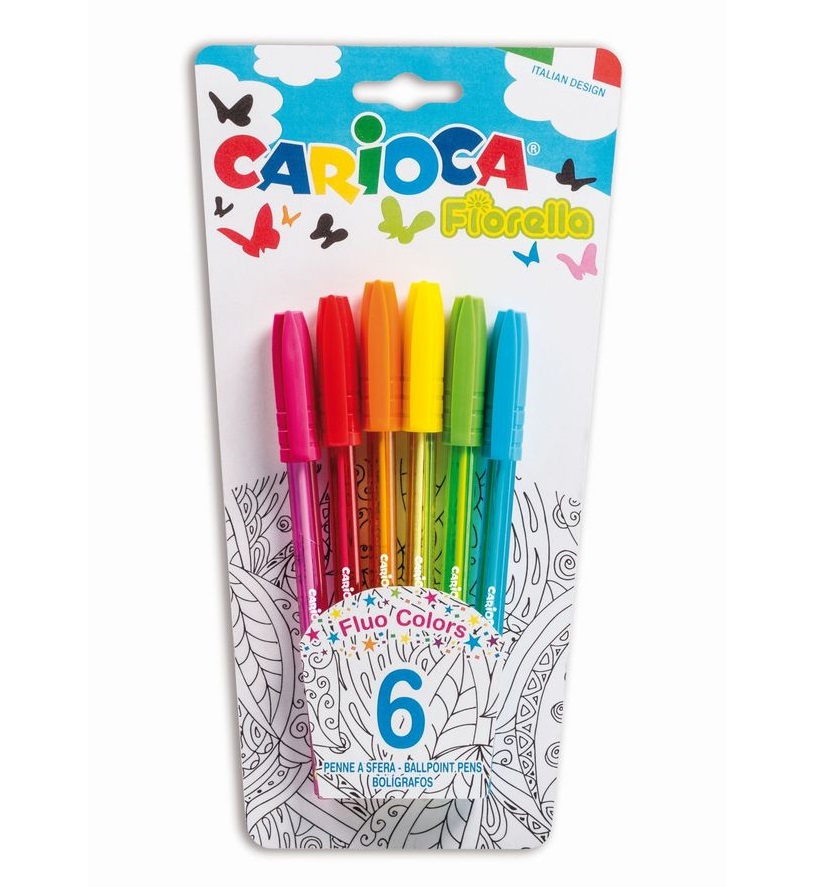 Pix cu capac, 6 culori fluorescente, corp transparent color, blister, Fiorella Carioca