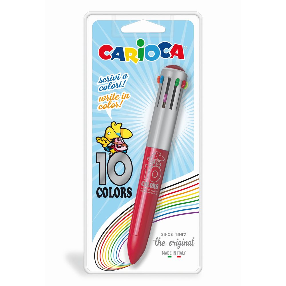 Pix retractabil, 10 culori, corp gri color, blister, Carioca