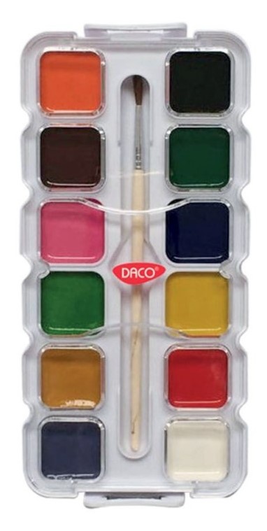 Acuarele semi-uscate pe baza de apa, 12 culori, pastila 28 x 28mm, pensula, AR127 Daco