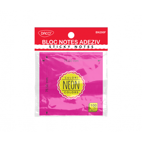 Notes autoadeziv 76mm x 76mm, 100 file/buc, roz neon, Daco BN200F