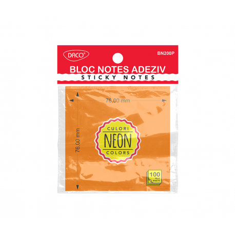 Notes autoadeziv 76mm x 76mm, 100 file/buc, portocaliu neon, Daco BN200P