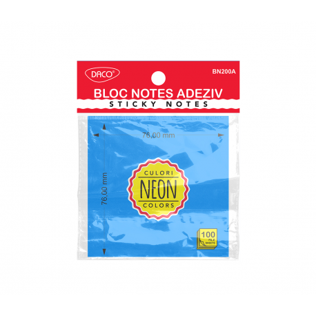 Notes autoadeziv 76mm x 76mm, 100 file/buc, albastru neon, Daco BN200A