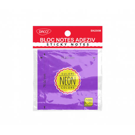 Notes autoadeziv 76mm x 76mm, 100 file/buc, mov neon, Daco BN200M