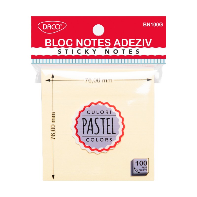 Notes autoadeziv 76mm x 76mm, 100 file/buc, galben pal, Daco BN100G