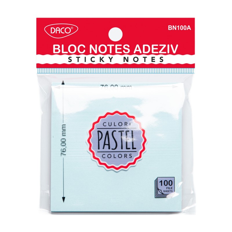 Notes autoadeziv 76mm x 76mm, 100 file/buc, albastru pal, Daco BN100A