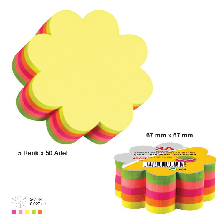 Notes autoadeziv floare 67mm x 67mm, 250 file/set, 5 culori neon, Acvila