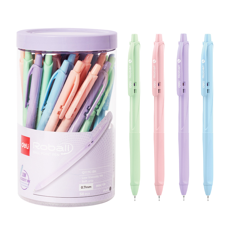Pix retractabil, negru, corp culori pastel, varf 0,7mm, Q70 Deli