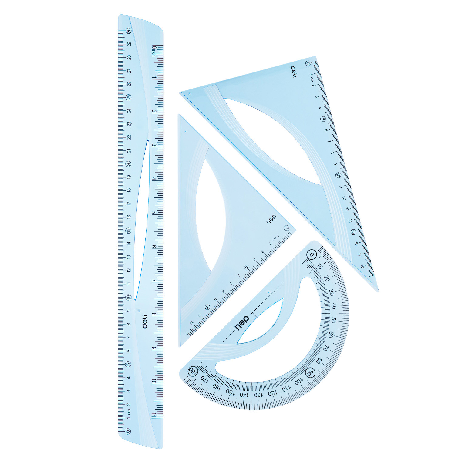 Set geometrie 4 piese, albastru tranparent, Deli DLEH12
