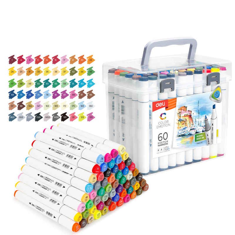 Marker cu 2 varfuri, 60buc/set, DLE70803-60, Color Emotion DELI