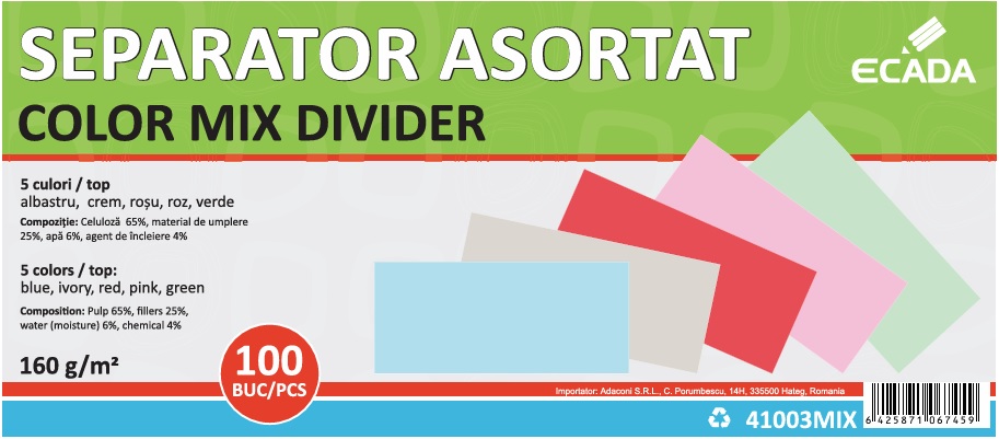 Separatoare carton portocaliu A6 100buc/set Ecada