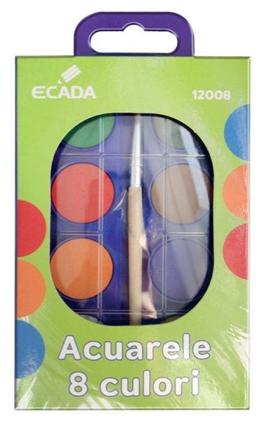 Acuarele pe baza de apa, 8 culori, pastila 23mm, pensula, Ecada