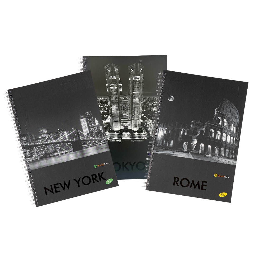Caiet cu spira A4, 70file, dictando, design cities by night, Elisa