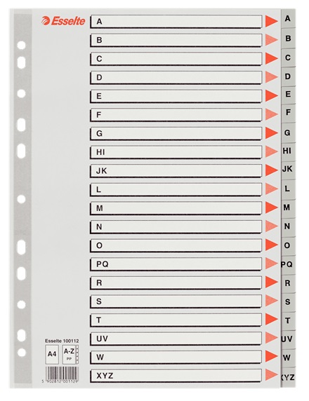 Separatoare plastic A4 A-Z gri, Esselte