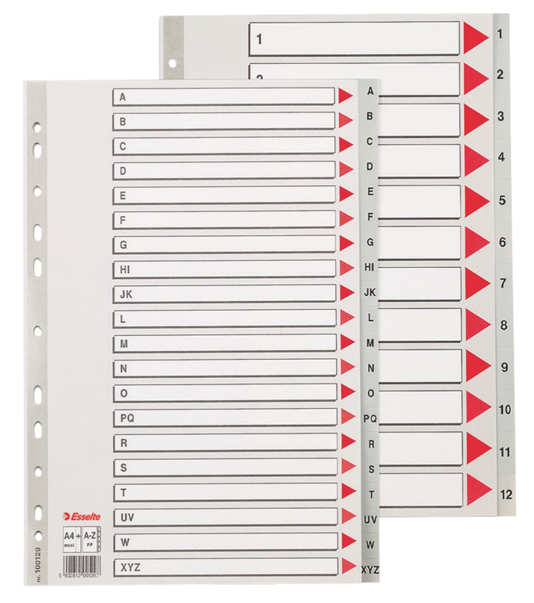 Separatoare plastic A4 Maxi A-Z gri, Esselte