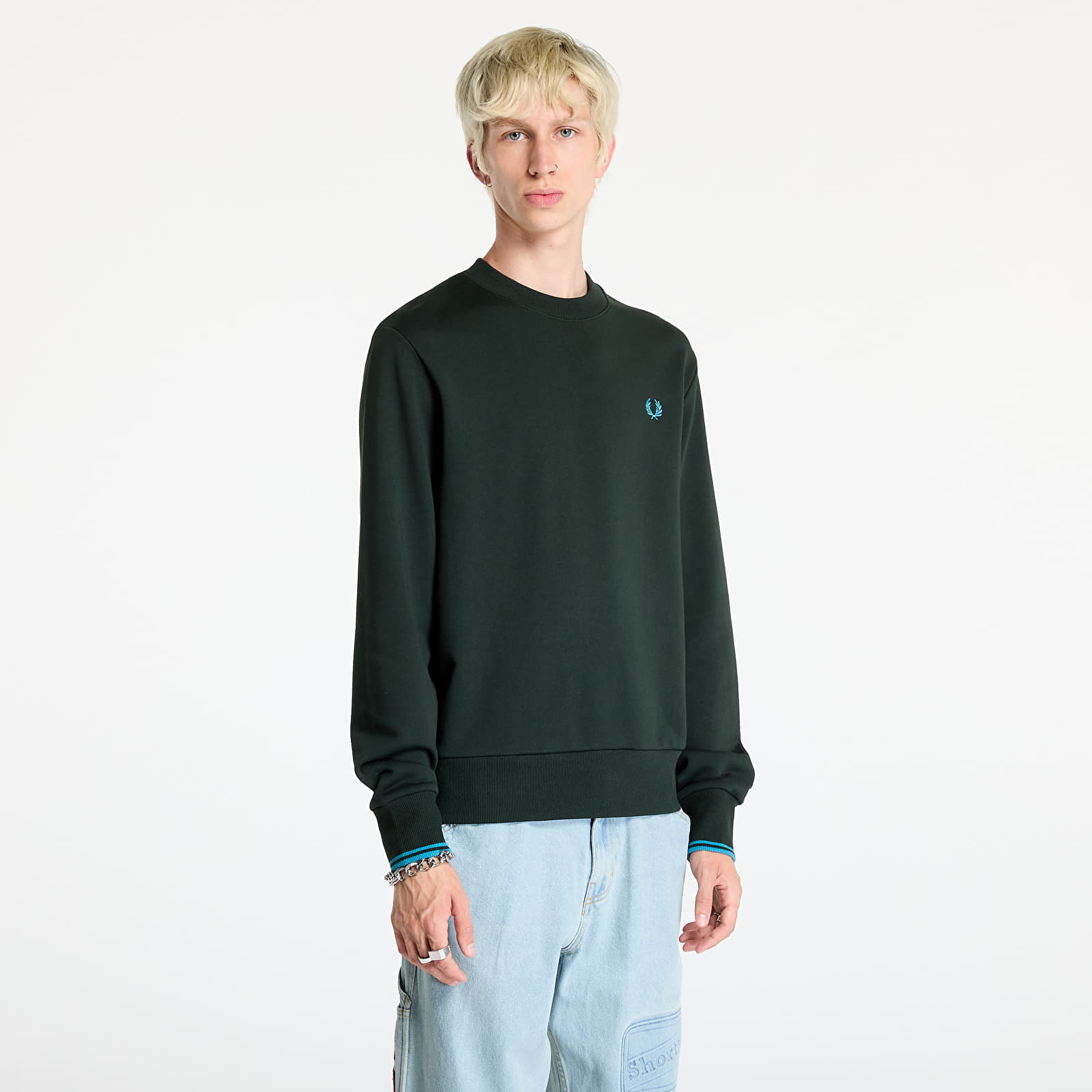 Hanorac FRED PERRY Crew Neck Sweatshirt Night Green/ Ocean