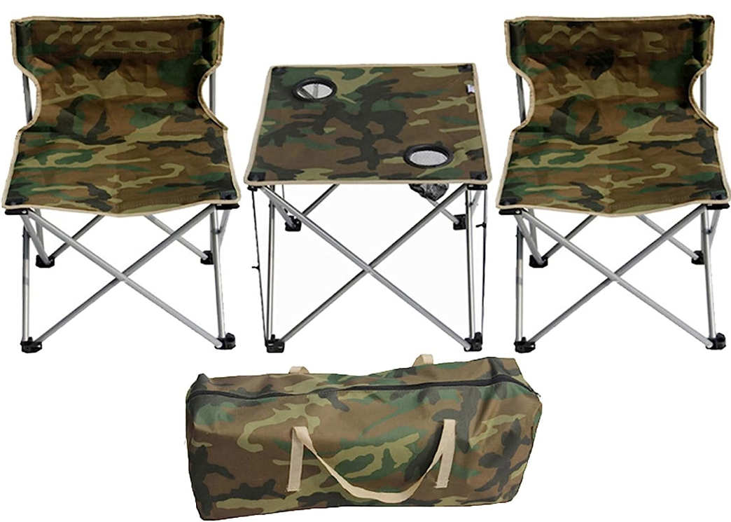 Set 1 Masa cu 2 Scaune Pentru Camping Pliabile Model Army Geanta Inclusa