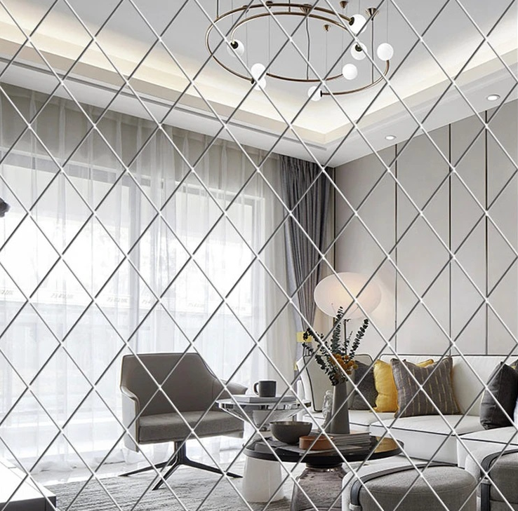 Set 58 Oglinzi Acrilice Autoadezive Luxer Model Romb dimensiune set 1 Metru partat 100 X 100 cm