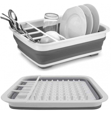 Suport pliabil pentru vase cu scurgator din silicon ALB/GRI