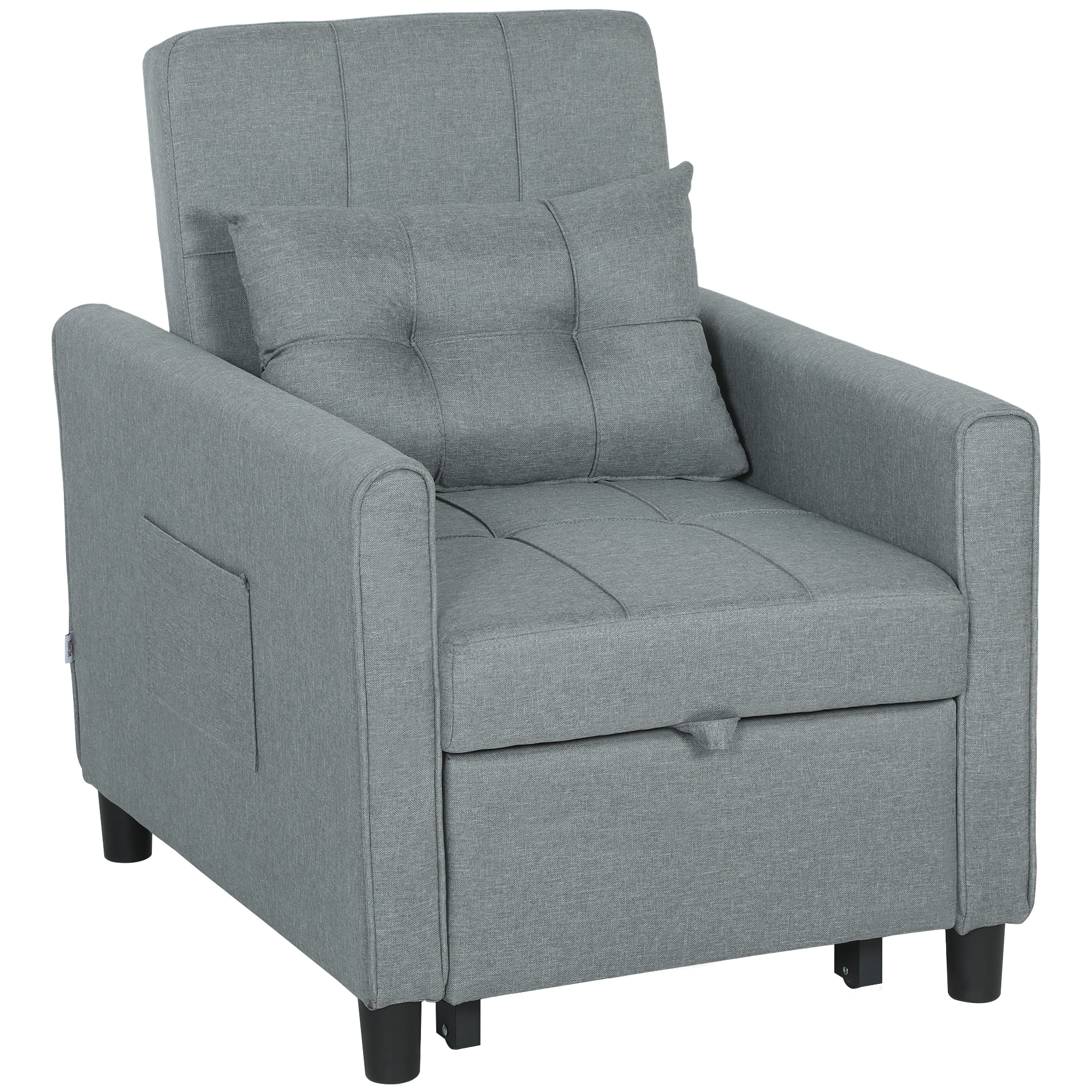 HOMCOM Fotoliu Pat pentru o Persoana 3 in 1 Convertibil in Sezlong cu Spatar Reglabil pe 3 Niveluri, Fotoliu Modern din Tesatura Gri