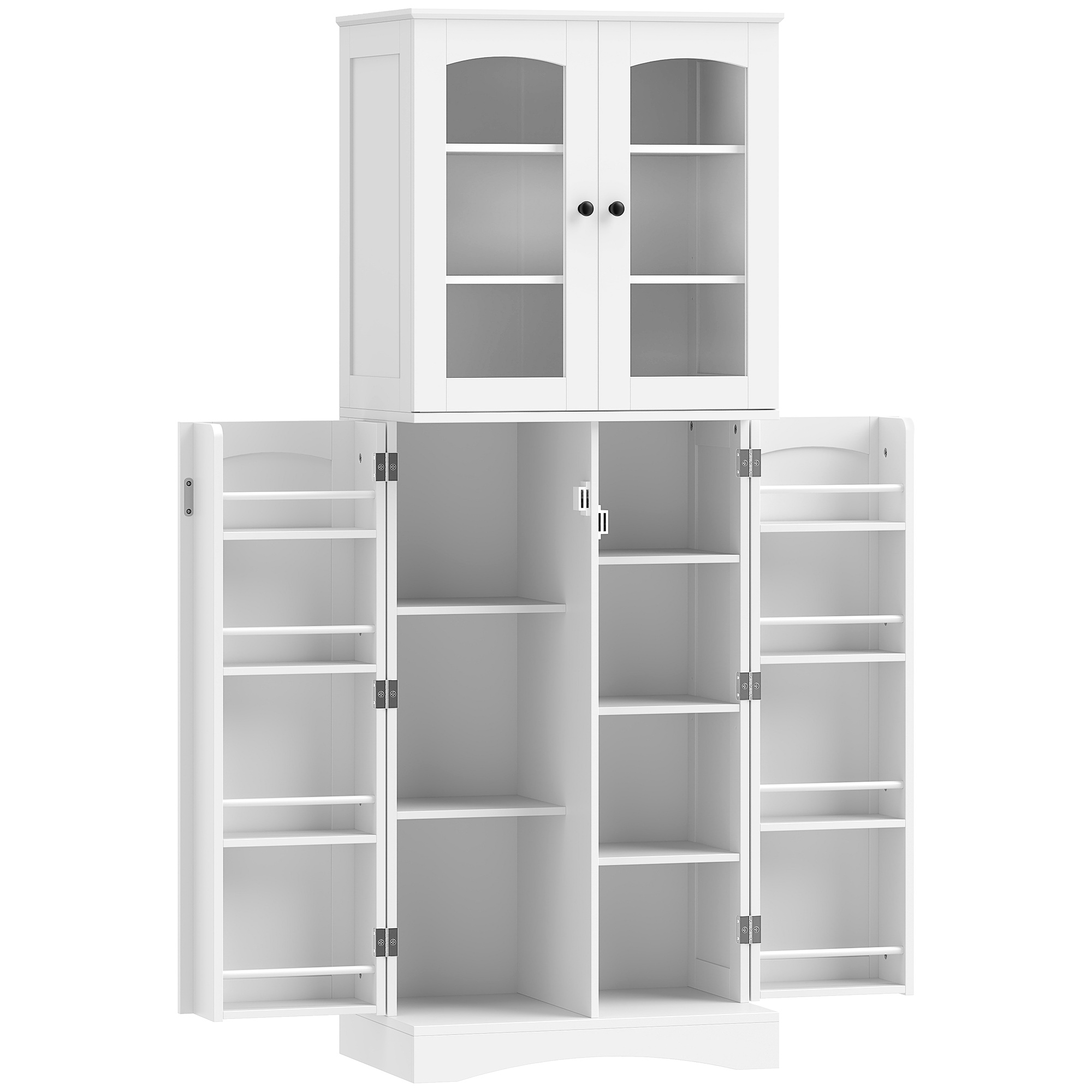 HOMCOM Bufet de bucătărie aragaz cu depozitare multi-rang, 2 dulapuri, uși din sticlă, 4 rafturi din lemn alb | Aosom Romania