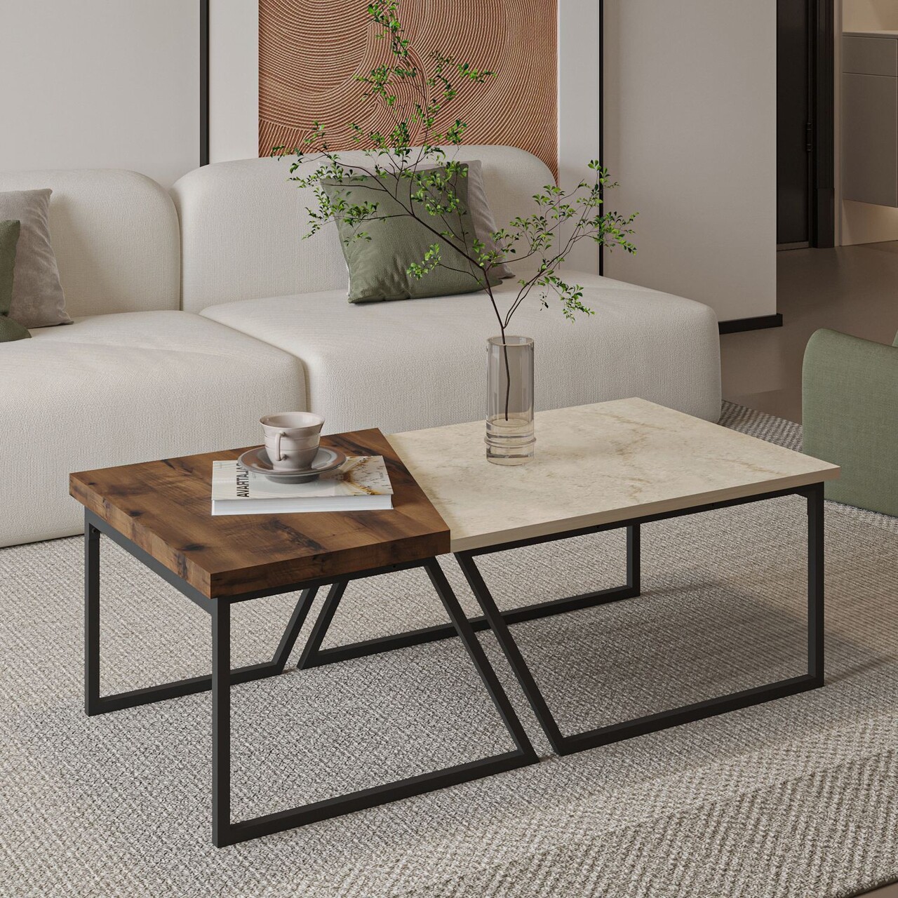 Set masute de cafea, Hanah Home, Verona P0024623, PAL, Travertin / Nuc rustic