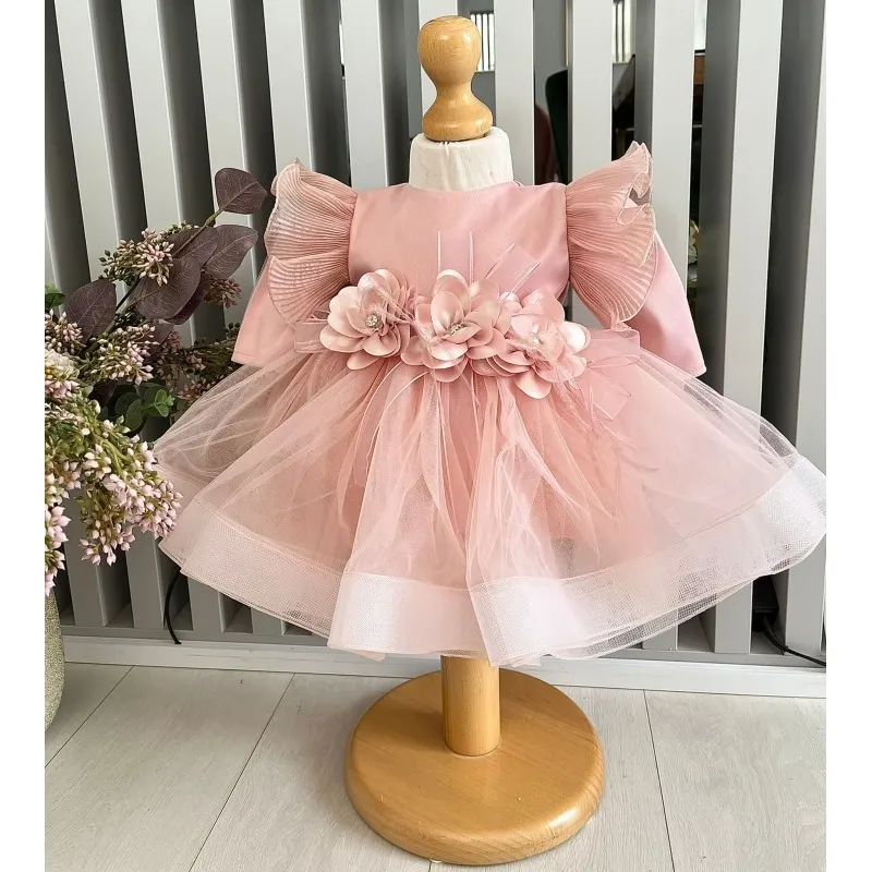 Rochita Botez Demi, cu Flori, Roz - DPH87