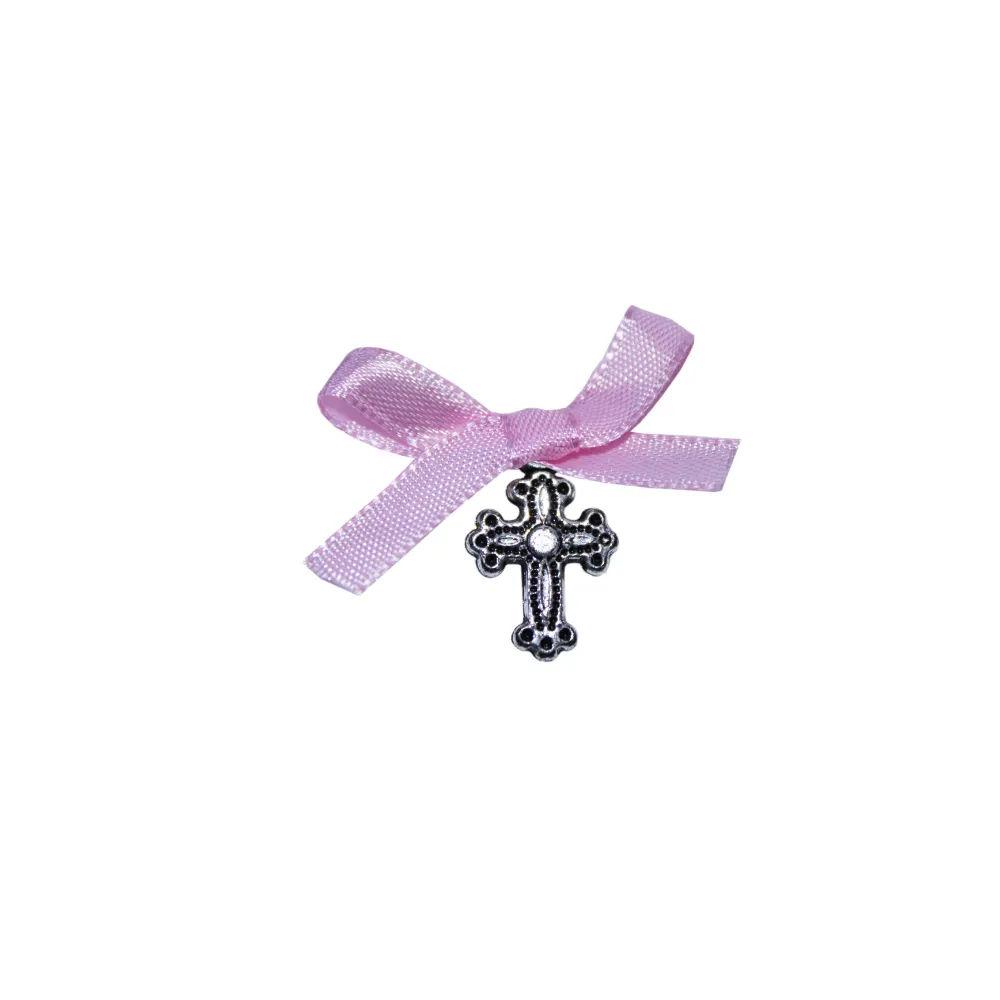 Marturii pentru Botez, Cruciulite cu Fundita, Roz - 20buc la Punguta - MCB07