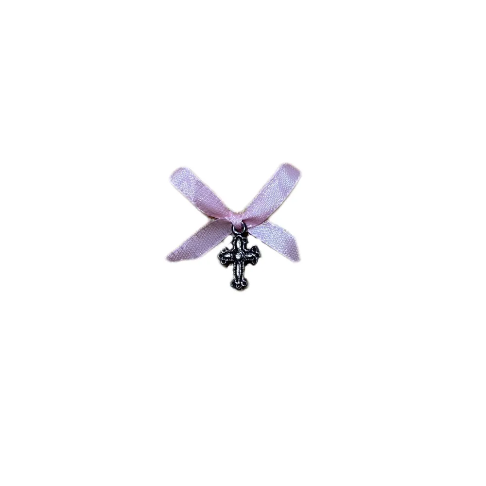 Marturii pentru Botez, Cruciulite cu Fundita, Roz Pudra - 20buc la Punguta - MCB08