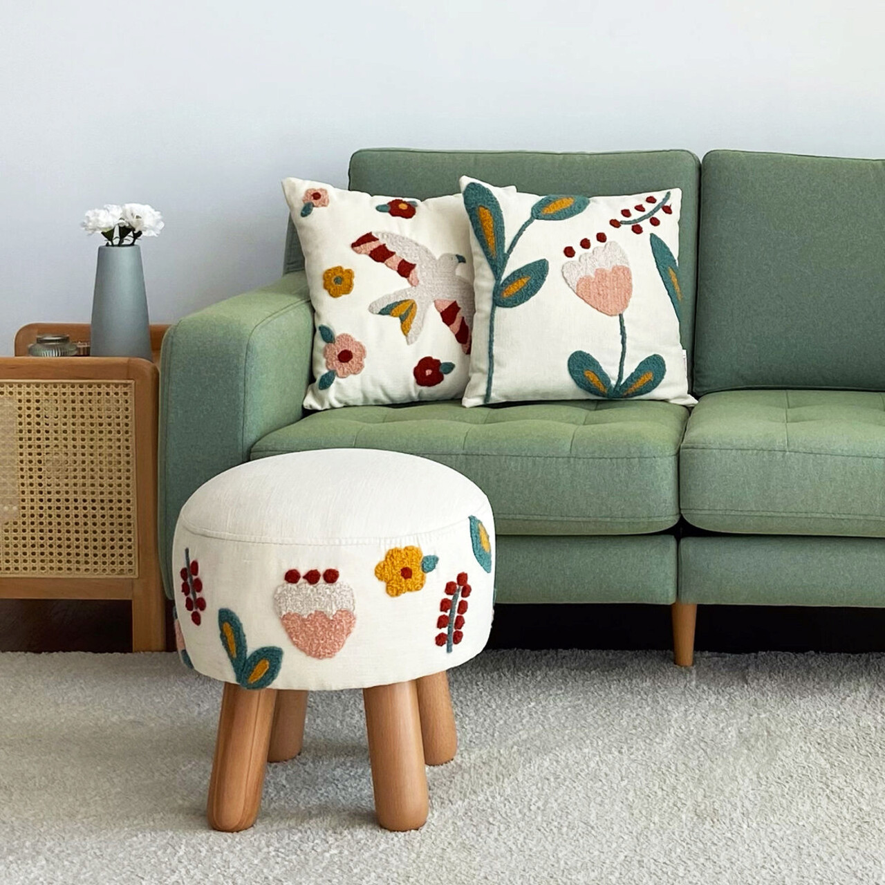 Set puf și pernă, Lovely Lilly, Roz / Roșu / Verde Azur