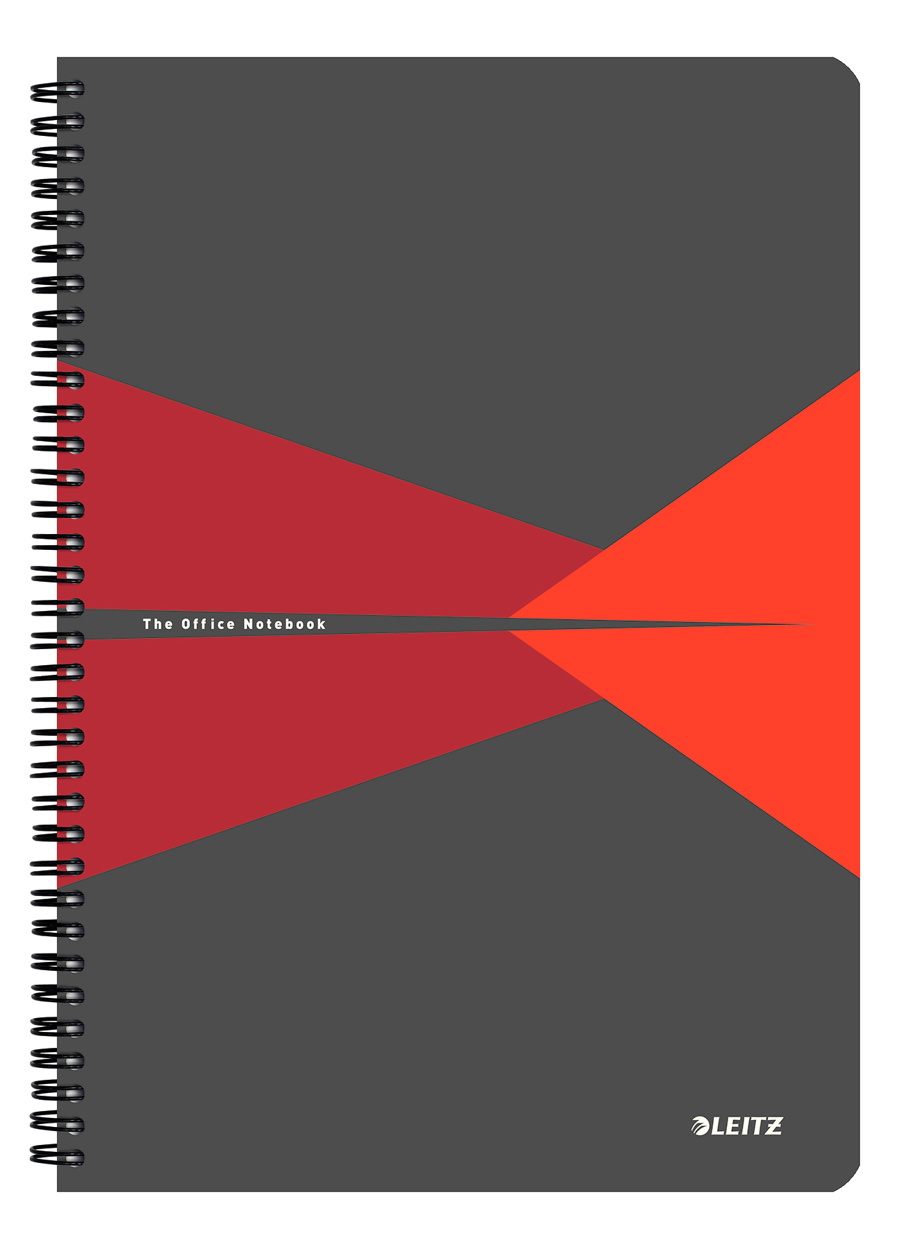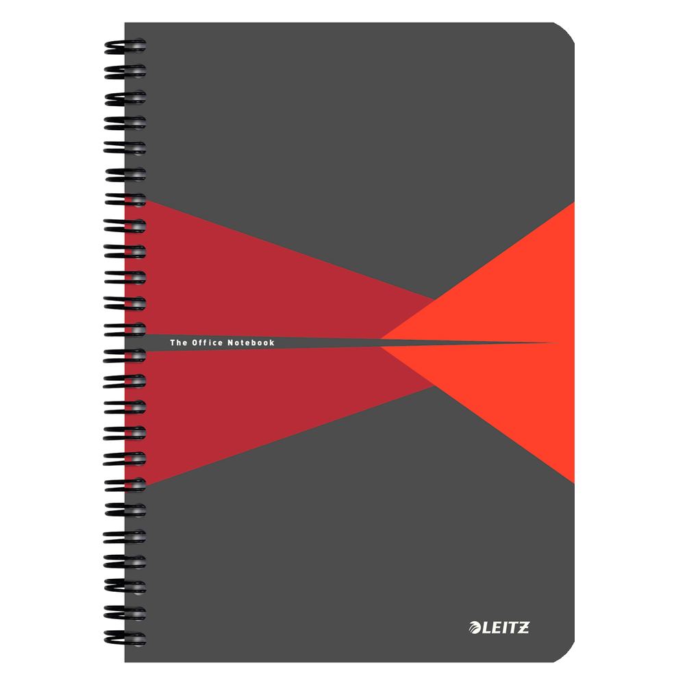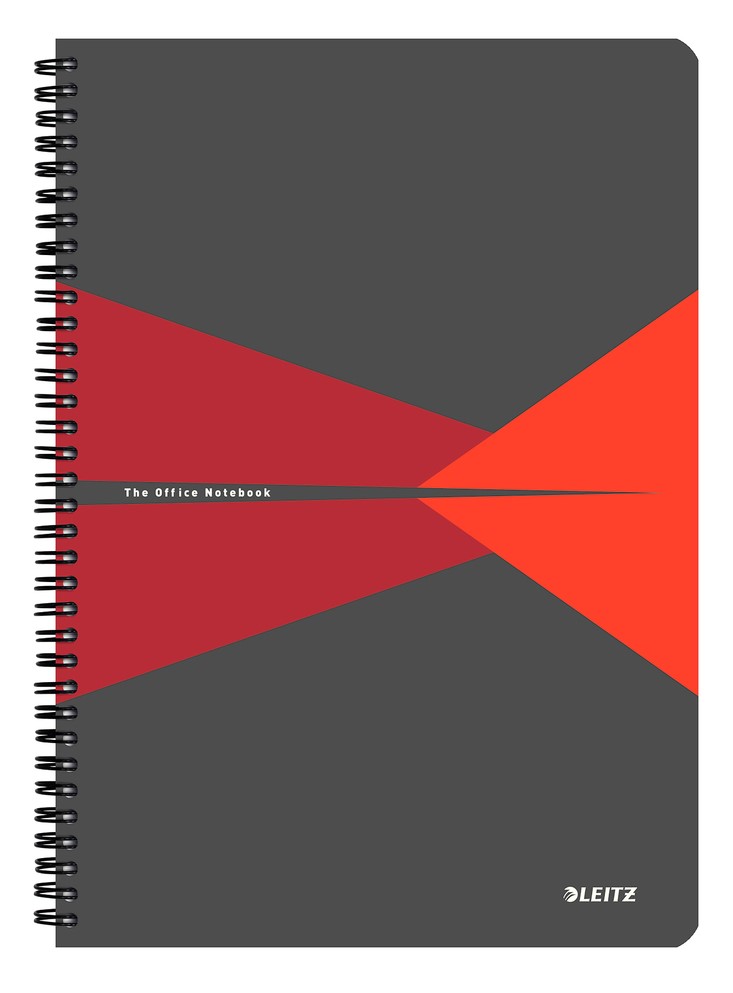 Caiet cu spira A4, 90file, dictando, coperta PP gri/rosu, Office Leitz
