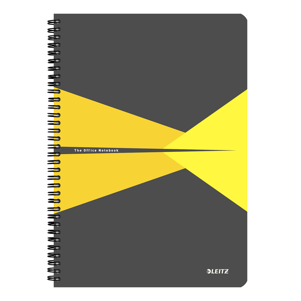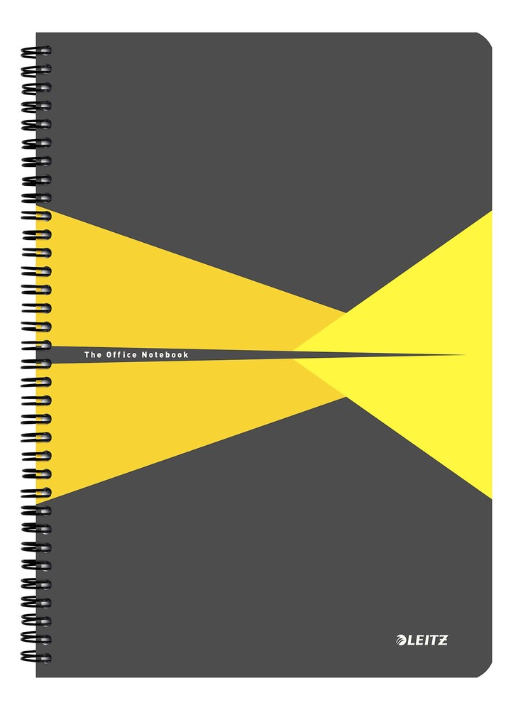 Caiet cu spira A4, 90file, dictando, coperta PP gri/galben, Office Leitz