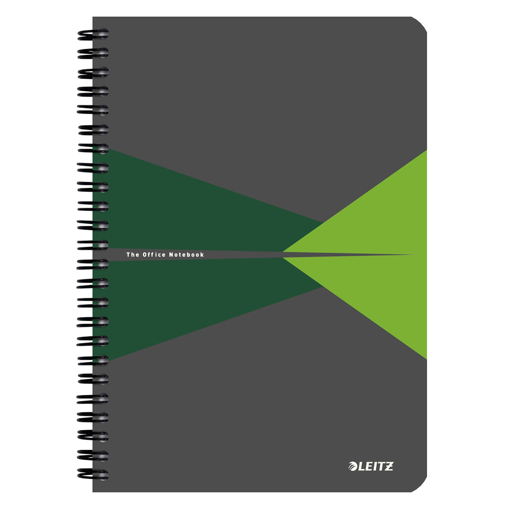 Caiet cu spira A5, 90file, dictando, coperta PP gri/verde, Office Leitz