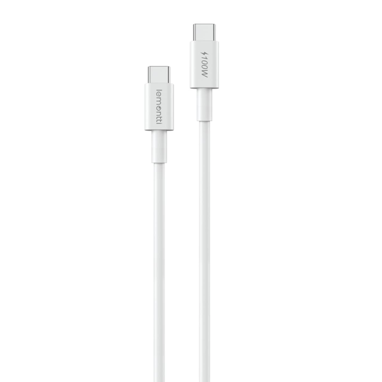 Cablu de date USB-C / USB-C, 1,2m, PD 100W, Fast Charge, alb, Lemontti