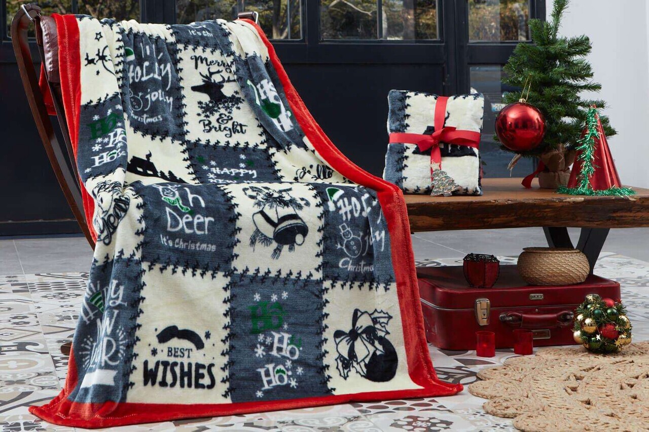 Patura, Lessentiel Maison, Holly Jolly, Poliester, Gri / Roșu / Albastru închis / Alb