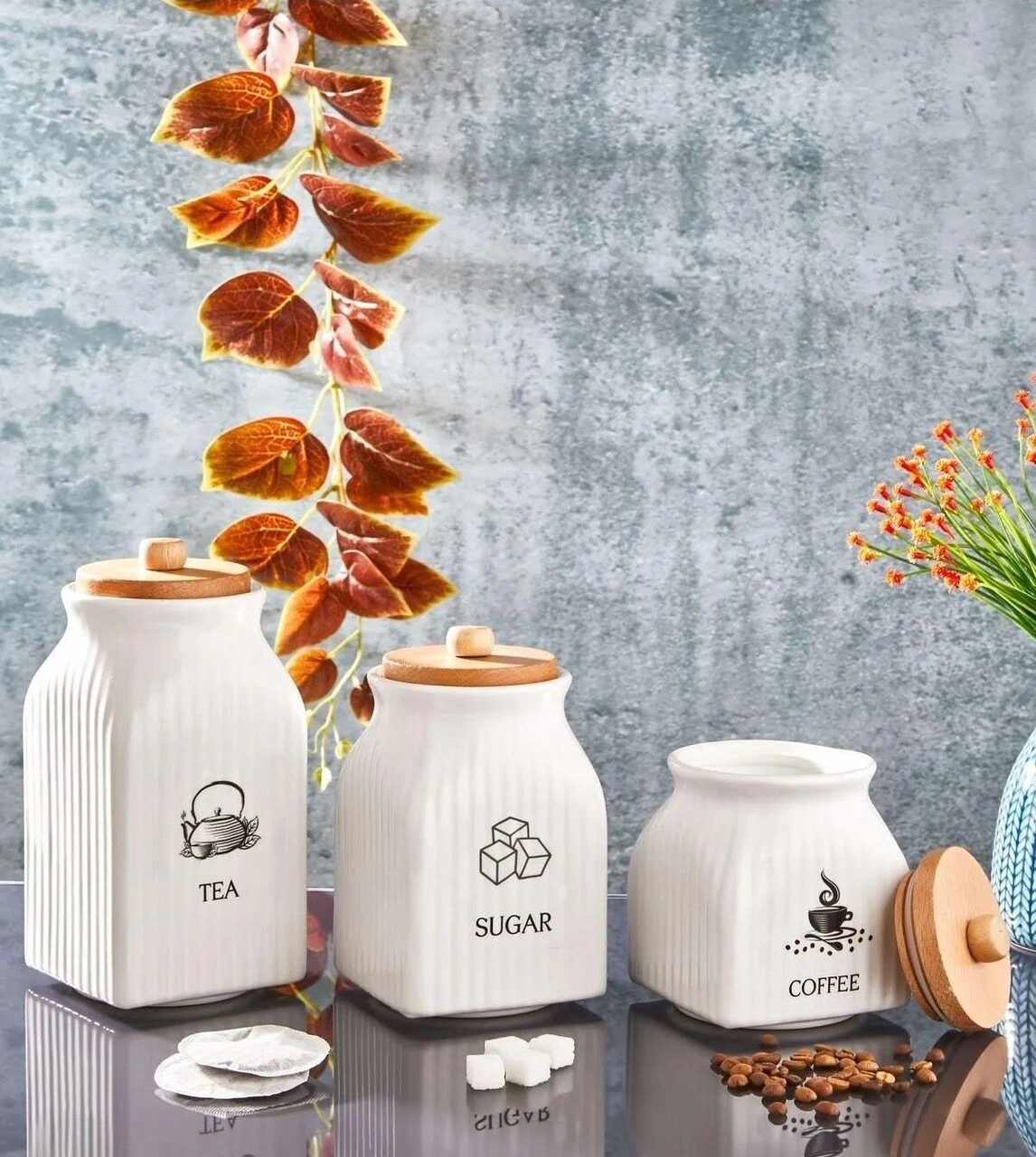 Set borcane (3 piese), Lessentiel Maison, 127RKL1404, Borcan mediu: 10 x 10 x 10 cm / 600 ml (1 bucată), Alb