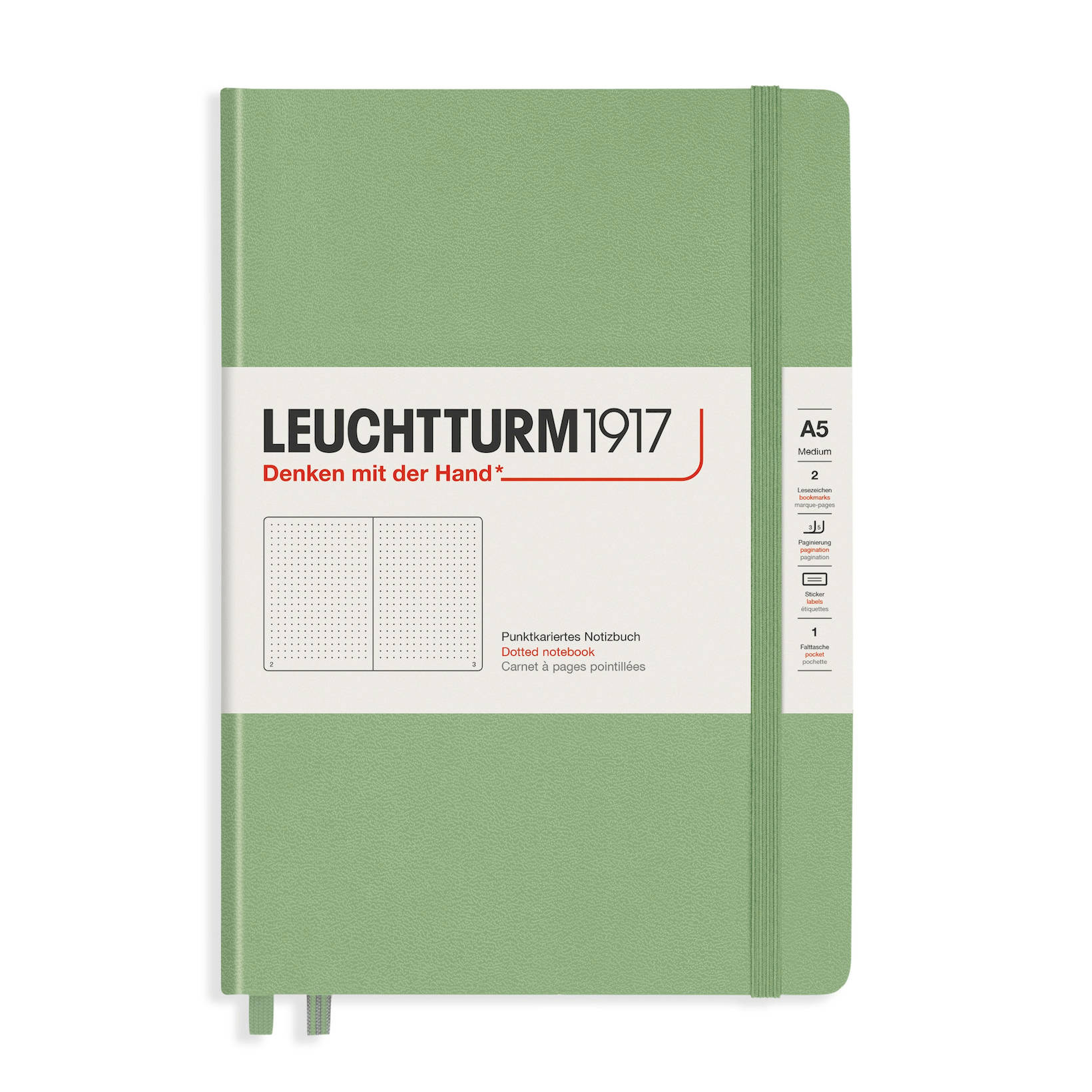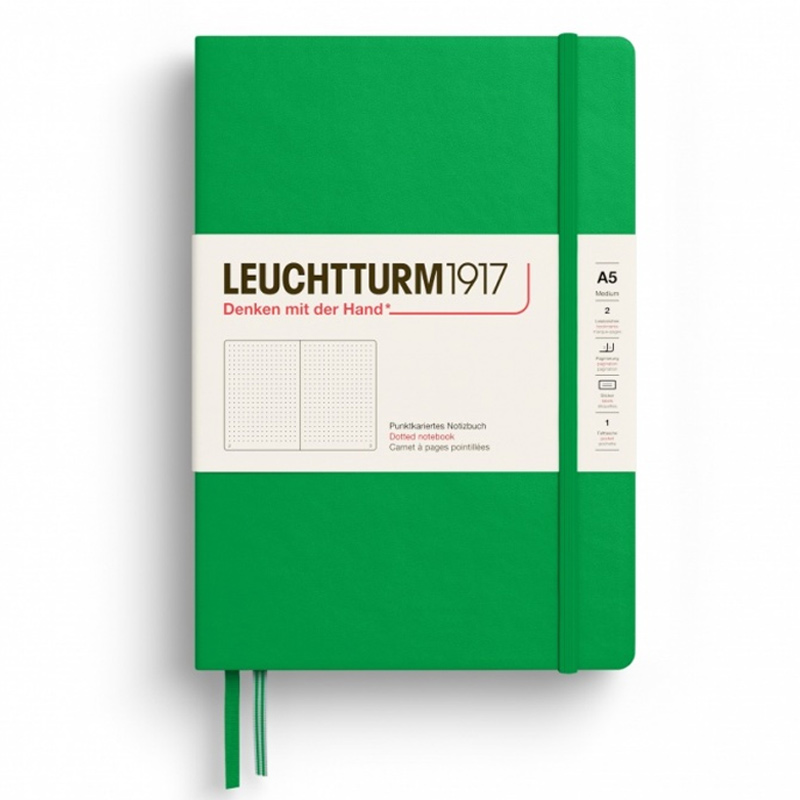 Caiet A5, 125file, dictando, coperta carton rigid, verde primavaratic, LEUCHTTURM LT372194