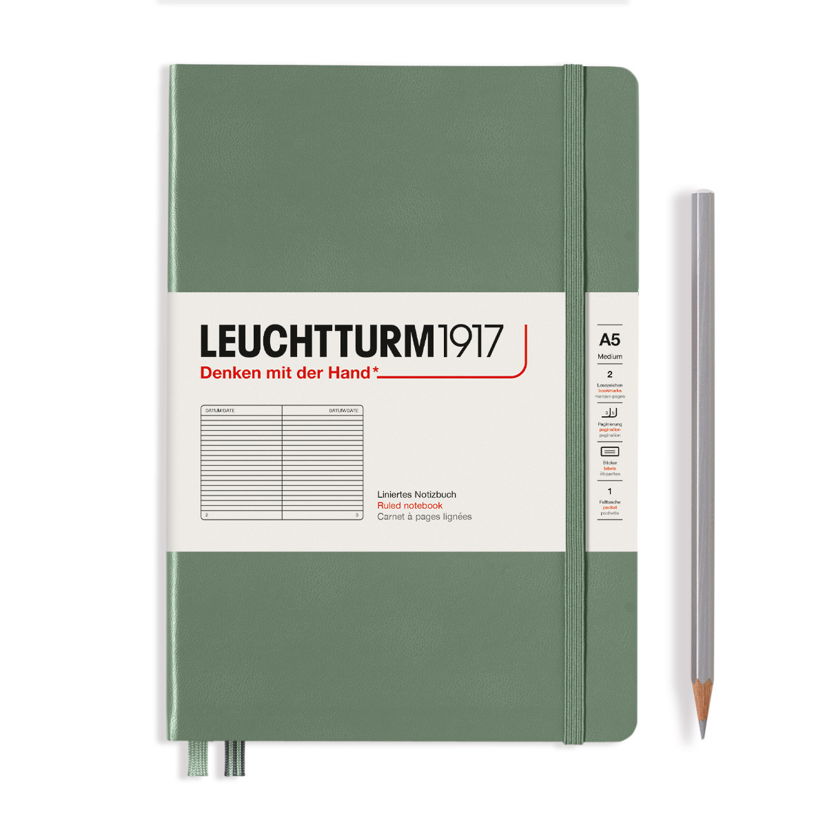 Caiet A5, 125file, dictando, coperta carton rigid, olive, LEUCHTTURM LT365490