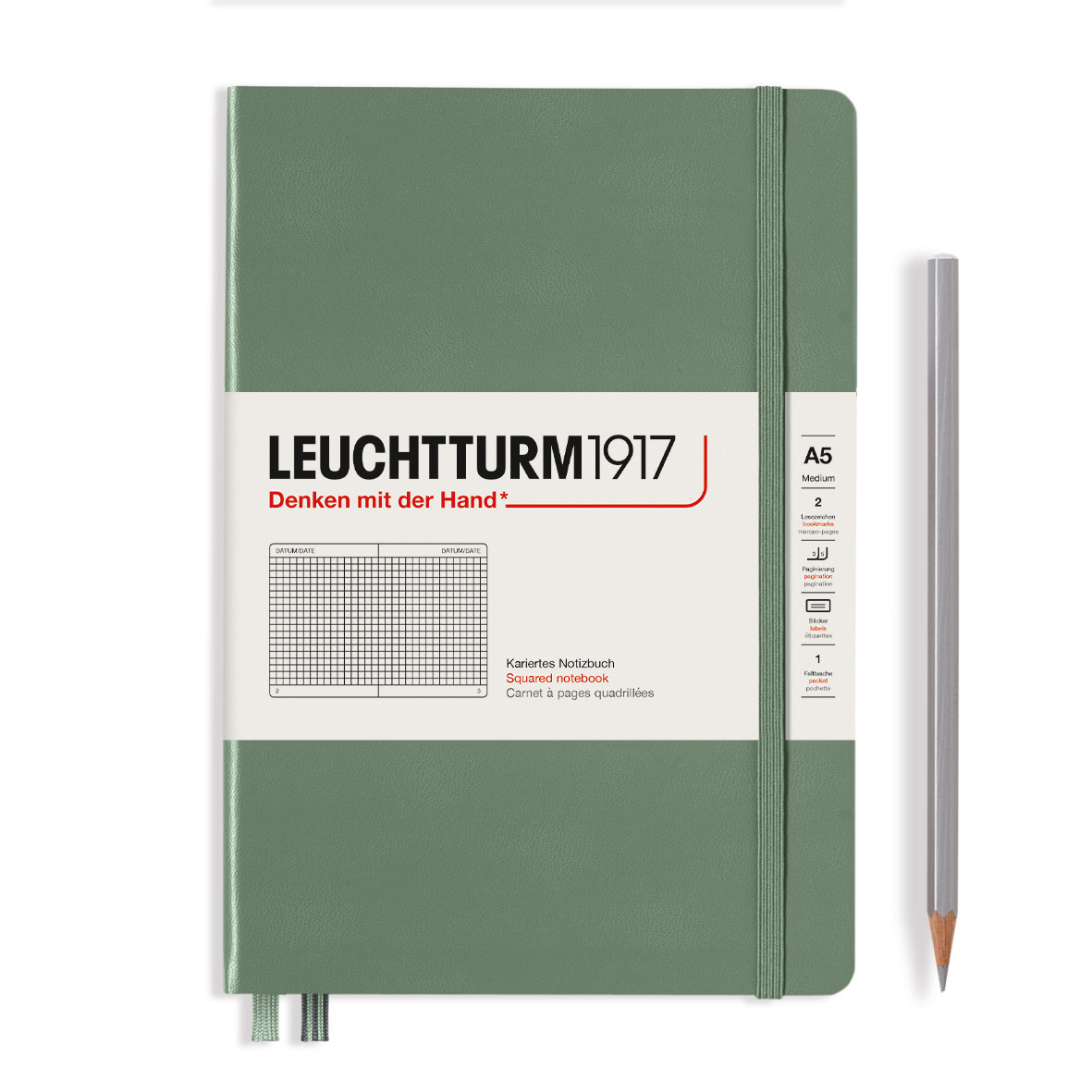 Caiet A5, 125file, matematica, coperta carton rigid, olive, LEUCHTTURM LT365491