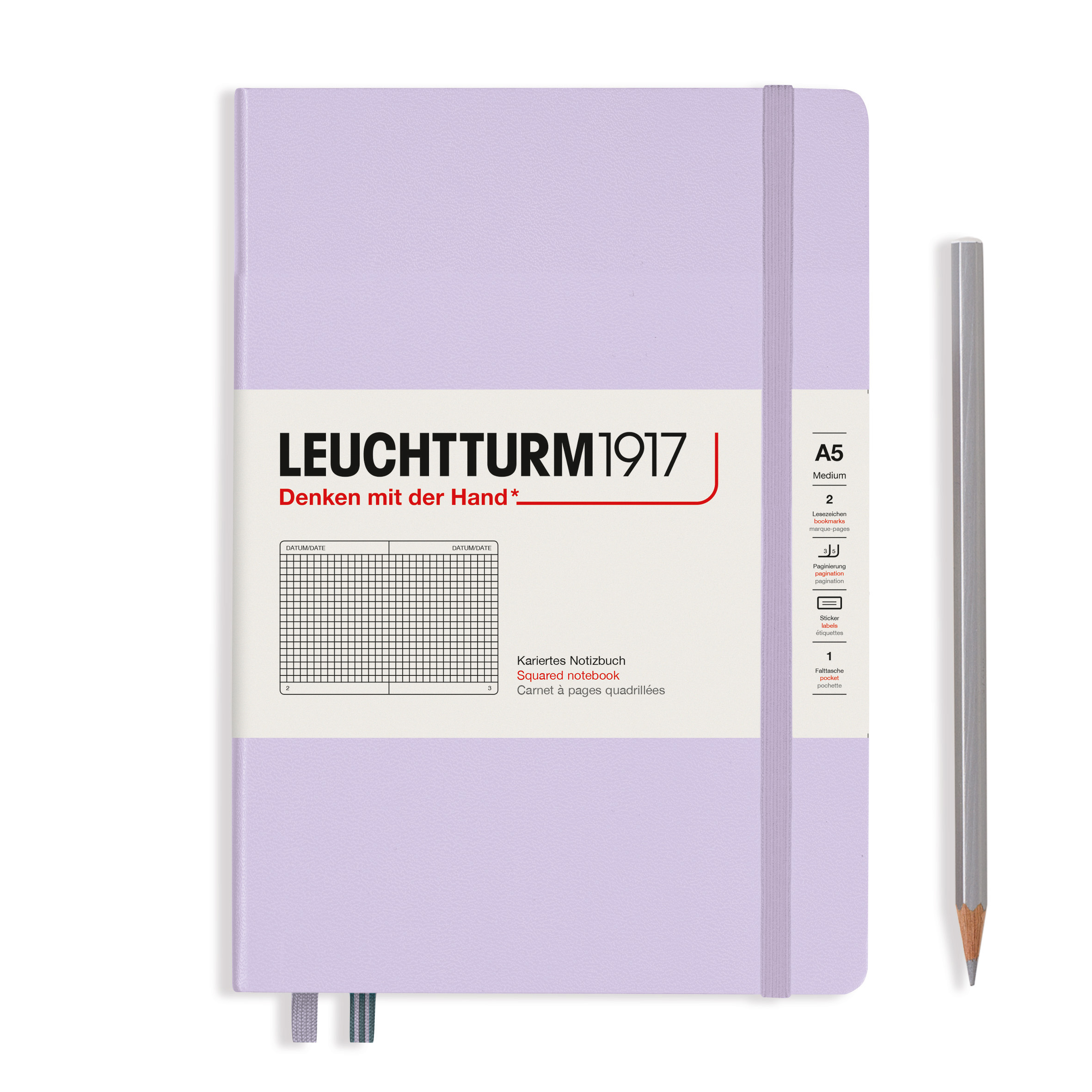Caiet A5, 125file, matematica, coperta carton rigid, lila, LEUCHTTURM LT365483